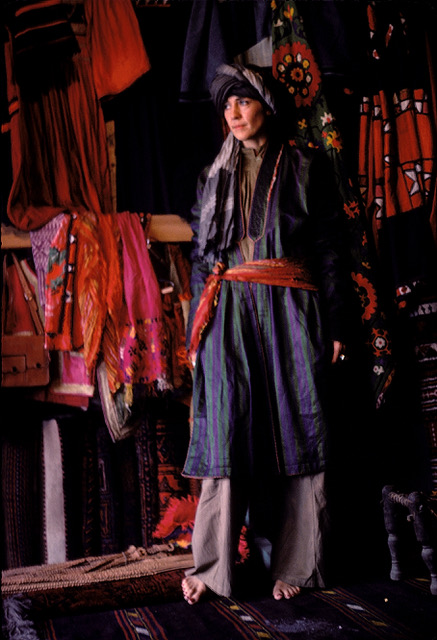 My discovery of “Chicken Street” was a real find. It later became known for souvenirs, but when I was there the shops were selling textiles, lapis lazuli, carpets, antiques, and more (though, I don’t recall seeing any chickens). As I wandered along, looking in windows, I was invited by many vendors to “Sit, have tea.” One such shop owner seemed particularly pleasant. His textiles were stunning, so I went in. He spoke a fair amount of English, which helped, since I only knew about ten words of Farsi by then. His name was Mohamed Nabi Rajab, owner of Dara-I-Zang Handicrafts, and he and I became good friends over the several months that I was in Kabul. He also introduced me to his good friend who sold beautiful woven saddle bags and rugs, and another who sold antique garments. I imported goods from all of them, which were rapidly sold through an exhibition at the Minge International Museum.
